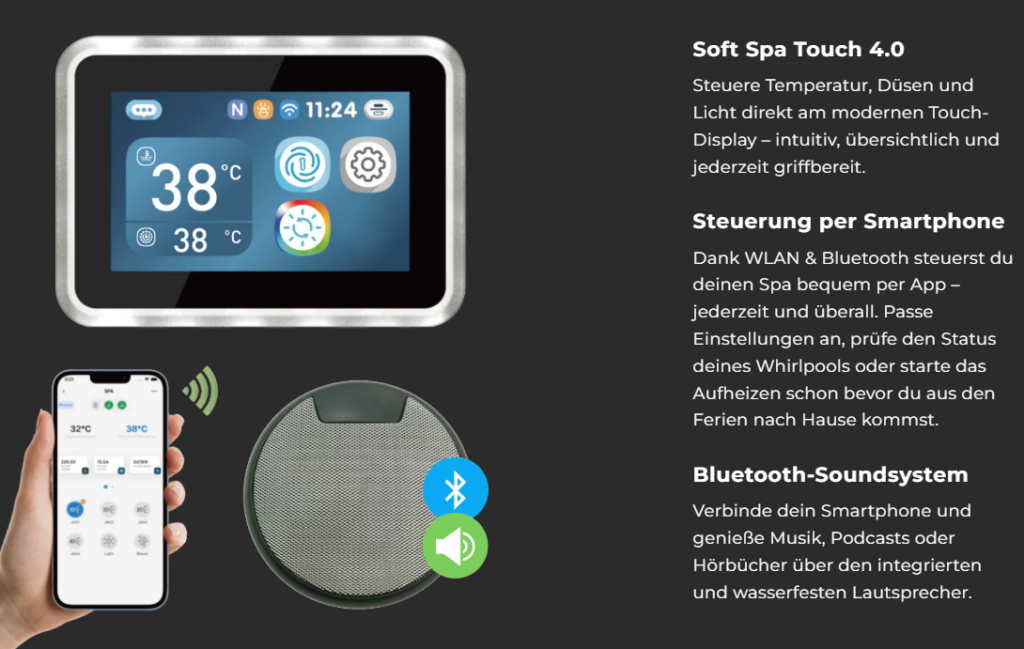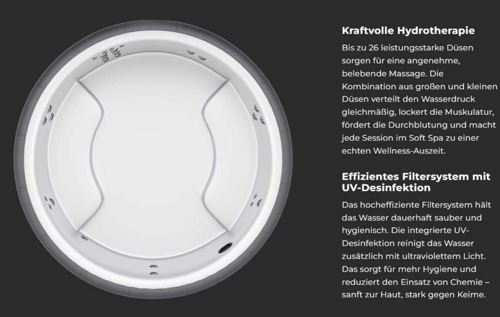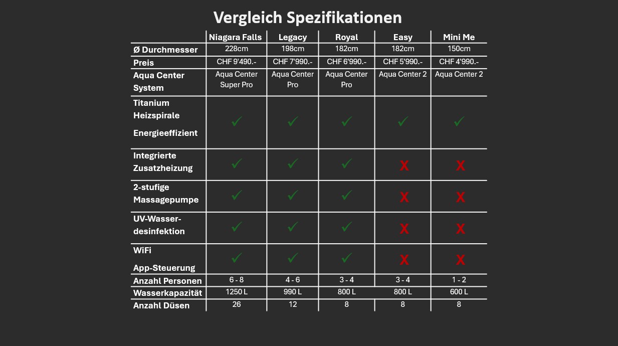 Der Whirlpool wird in 5 verschiedenen Grössen angeboten.